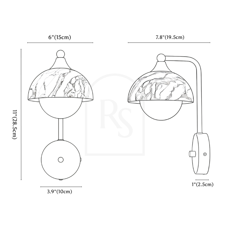 The Crickle wall lamp is a sophisticated light fixture that blends luxury and functionality. Designed with a sleek metal frame, a striking marble shade, and a durable plastic diffuser, it creates a refined contrast of textures. The curved arm supports the dome-shaped shade, allowing soft, diffused lighting to enhance bedrooms, hallways, and accent walls. This wall lamp is perfect for modern and classic interiors, adding an artistic touch while maintaining practicality.