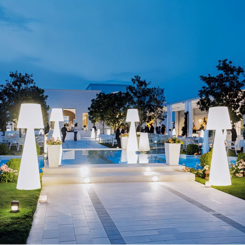 The Dipa Floor Lamp is constructed using high-quality plastic for both the lampshade and the base, ensuring durability and a sleek, modern aesthetic. This material choice allows the lamp to spread light evenly from top to bottom, creating a beautiful ambient illumination that enhances any indoor or outdoor space.