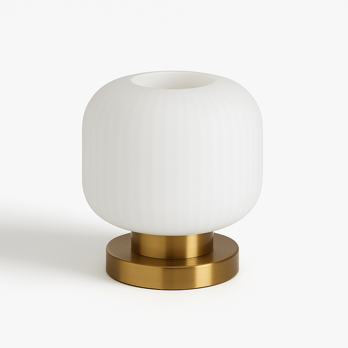 XMAS25Ribbed glass and brass base diffuse soft light and create captivating shadows — perfect for adding warmth and charm to living areas or bedrooms.