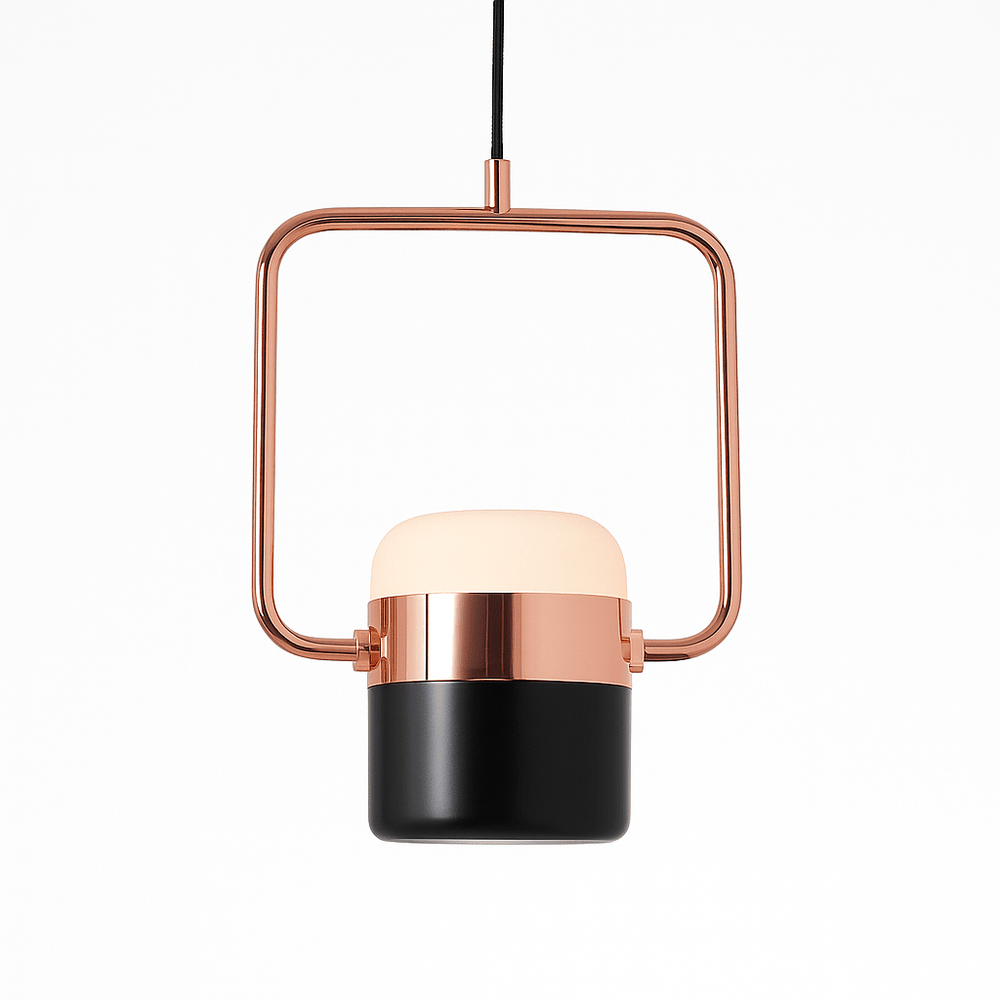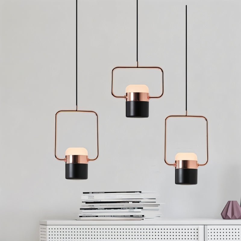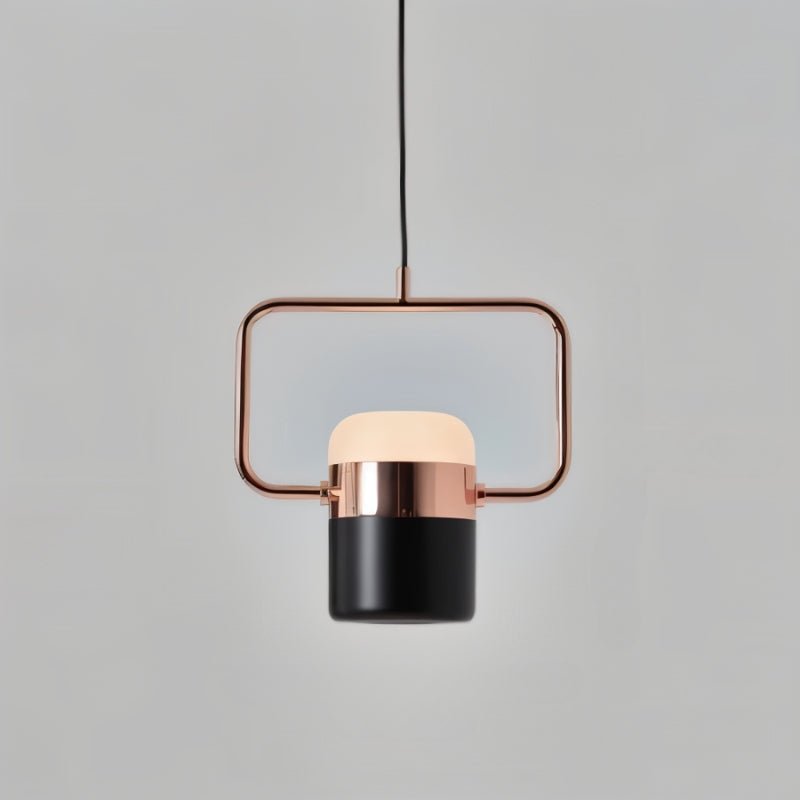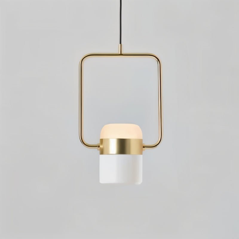The Fulmen Pendant Light is a modern light fixture featuring a bold geometric frame that encases a cylindrical frosted glass shade. Made from durable iron and alloy, it blends brushed metal with soft illumination for a striking contrast. Its structured design enhances kitchen islands, dining areas, entryways, and modern living spaces, fitting seamlessly into minimalist, industrial, and mid-century interiors. Suspended elegantly, it adds both function and sculptural appeal to any setting.