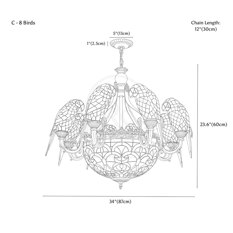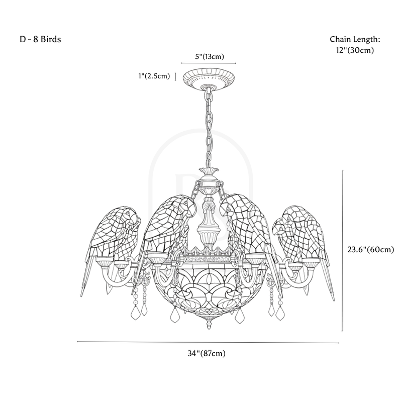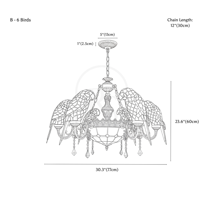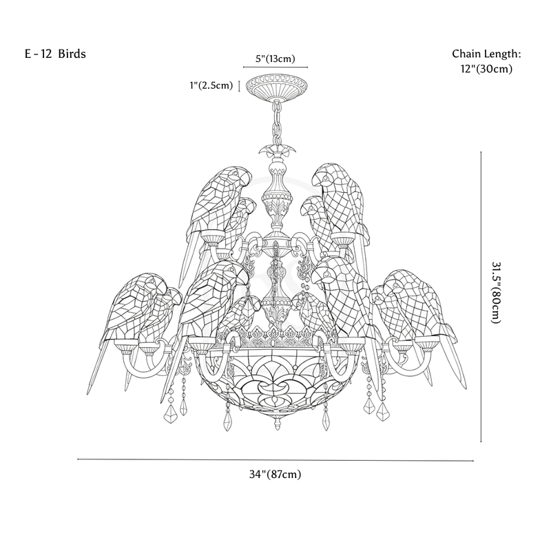 Introduce a touch of elegance to your living space with our European-style Glass Parrot Chandelier. Crafted with a retro design, this ceiling chandelier will add a touch of pastoral charm to any room. Perfect for dining or living areas, the retro charm of the Parrot Chandelier will surely elevate the decor of your home.
