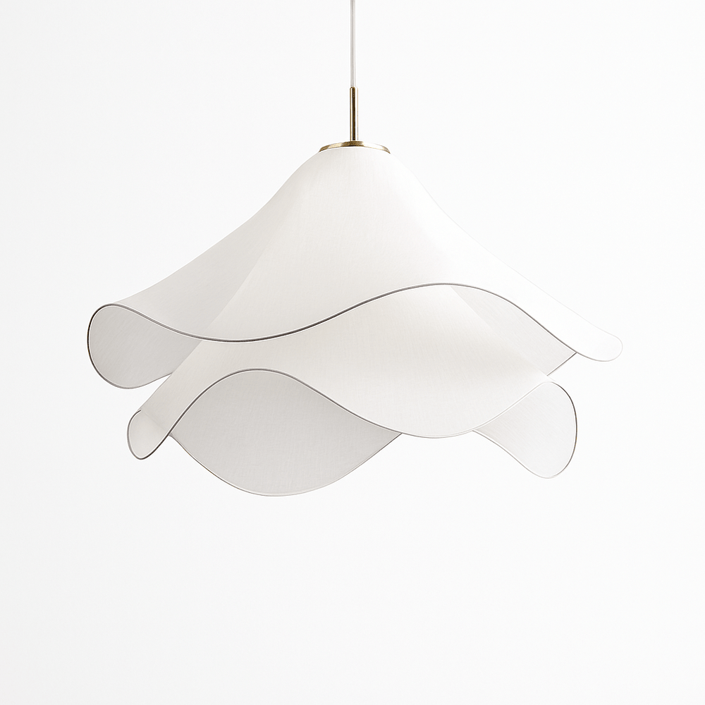 The Halos Pendant Light is a modern light fixture made from durable Fabric, featuring a soft, sculptural design with flowing, layered curves. The lamp's unique form provides a soft, diffused light, creating a serene and inviting ambiance. Perfect for contemporary living rooms, bedrooms, or dining areas, it adds an elegant, minimalist touch to any space. Its clean design and soft glow make it ideal for both residential and commercial settings, providing both aesthetic appeal and functional lighting.