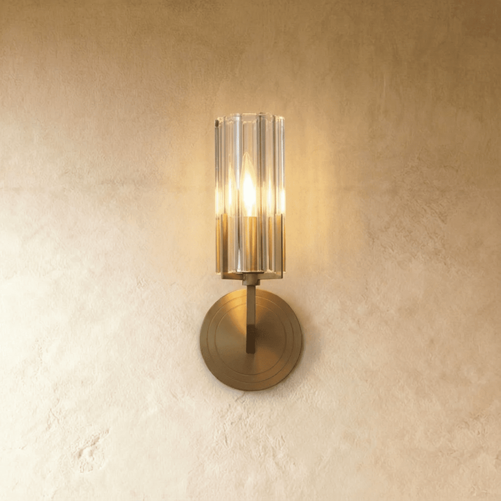 The Insula Wall Lamp offers a minimalist yet luxurious design, merging modern simplicity with timeless elegance. Its structure features a sleek copper base with a refined matte finish that enhances its warm, sophisticated look. The cylindrical glass shades are precisely crafted to diffuse light gently while elegantly encasing the bulb. Perfect for hallways, living rooms, or bedrooms, this copper and glass wall lamp adds a soft glow and a refined touch to any interior.