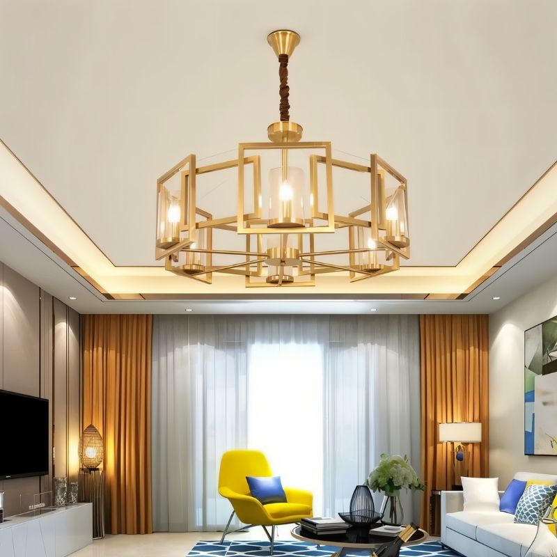 NY2026Geometric iron frame delivers bold architectural elegance and a warm glow — perfect for living rooms, dining areas, and entryways needing a striking centerpiece.