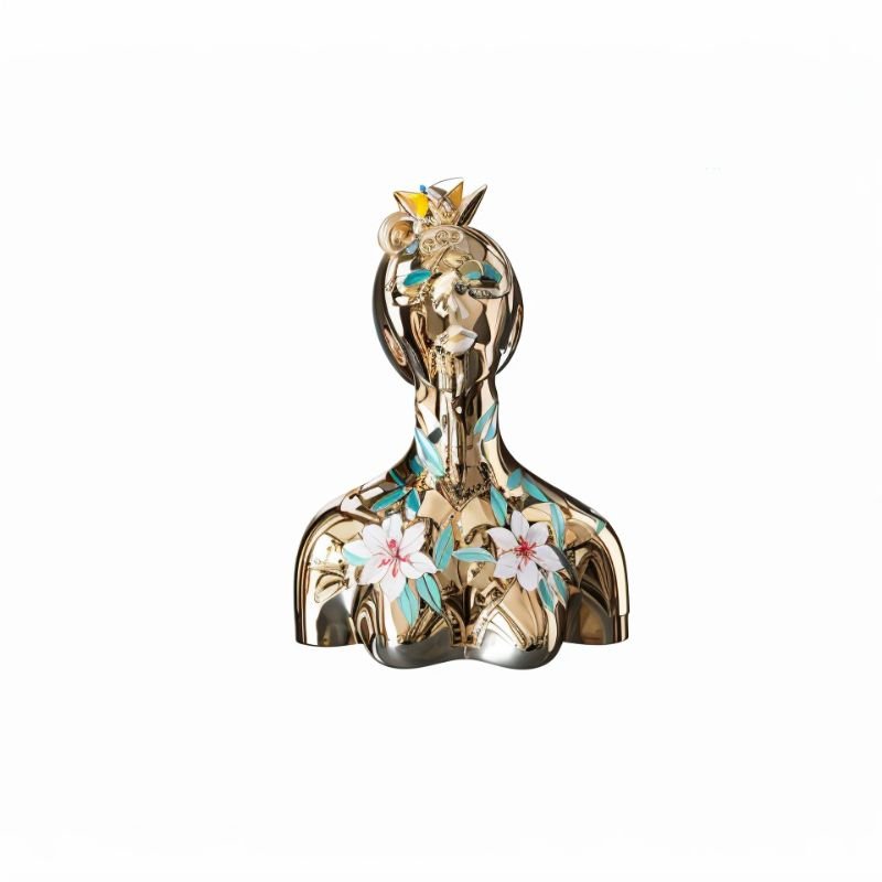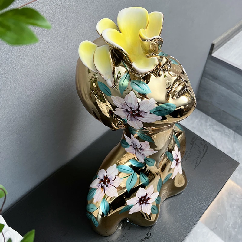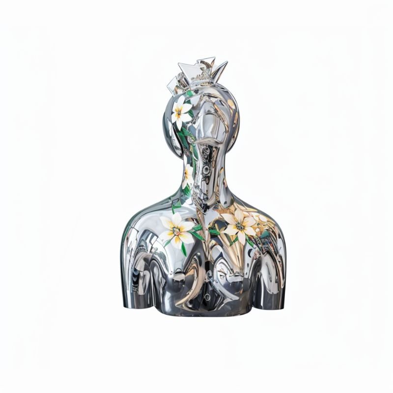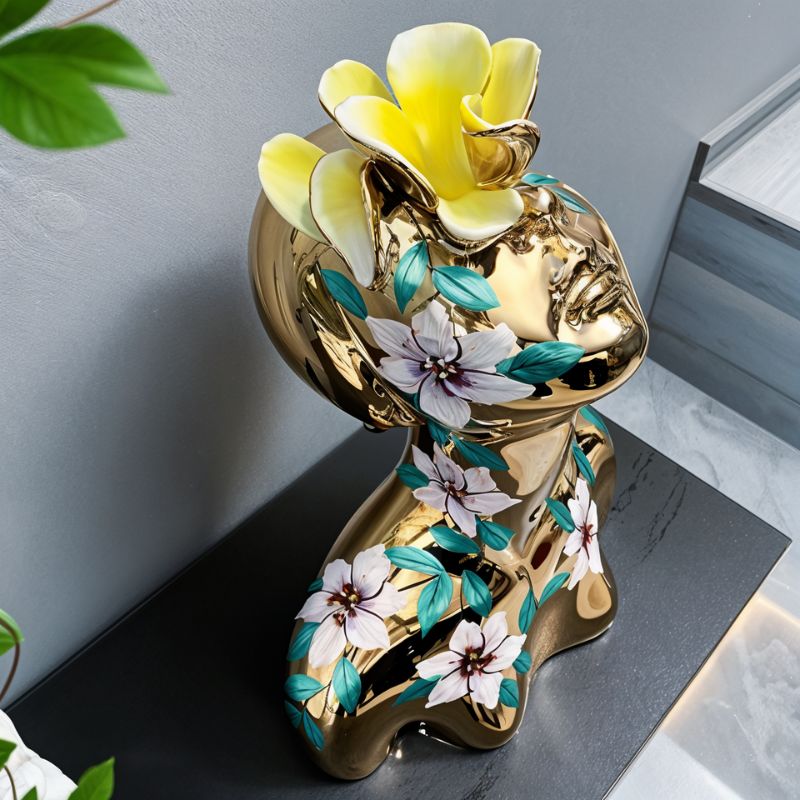 The Khloris Figurine stands out due to its one-of-a-kind design featuring a half-sculpted female body with a striking electroplated gold or chrome finish. The dynamic, painted flowers add a unique aesthetic that enhances its artistic allure. Crafted from high-quality, non-toxic resin, it reflects superior craftsmanship and innovation, making it a perfect addition to any decor. The figurine is available in two distinct styles and sizes, allowing for customization to fit various interior spaces.