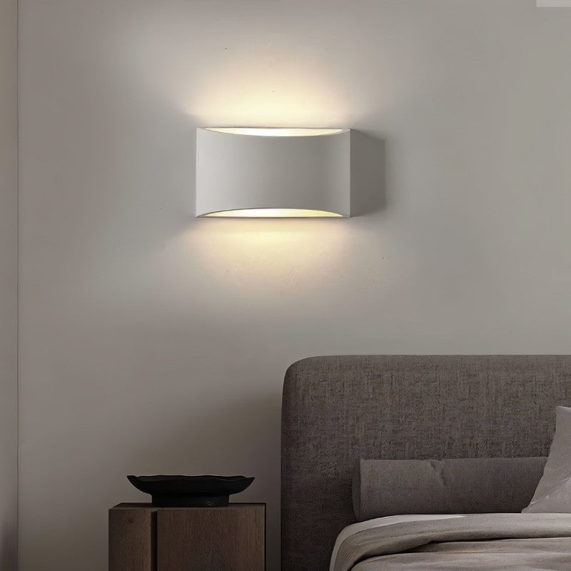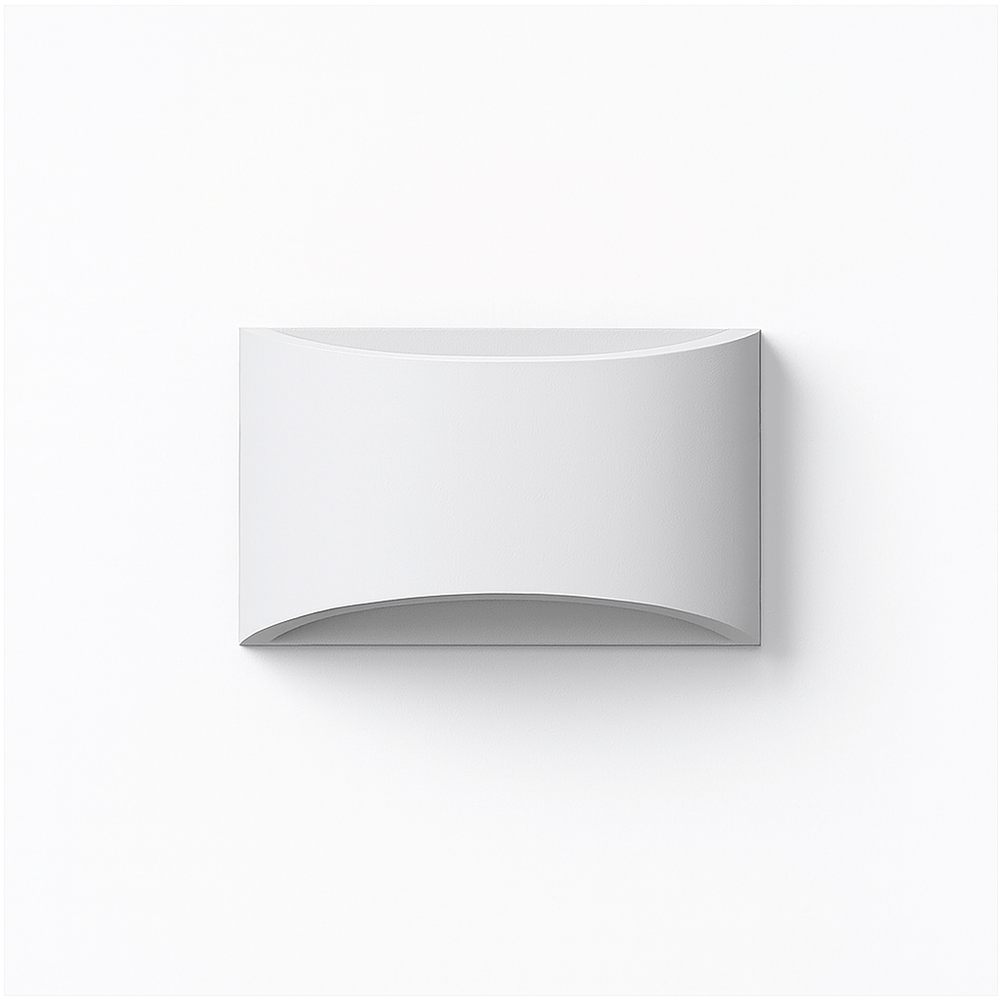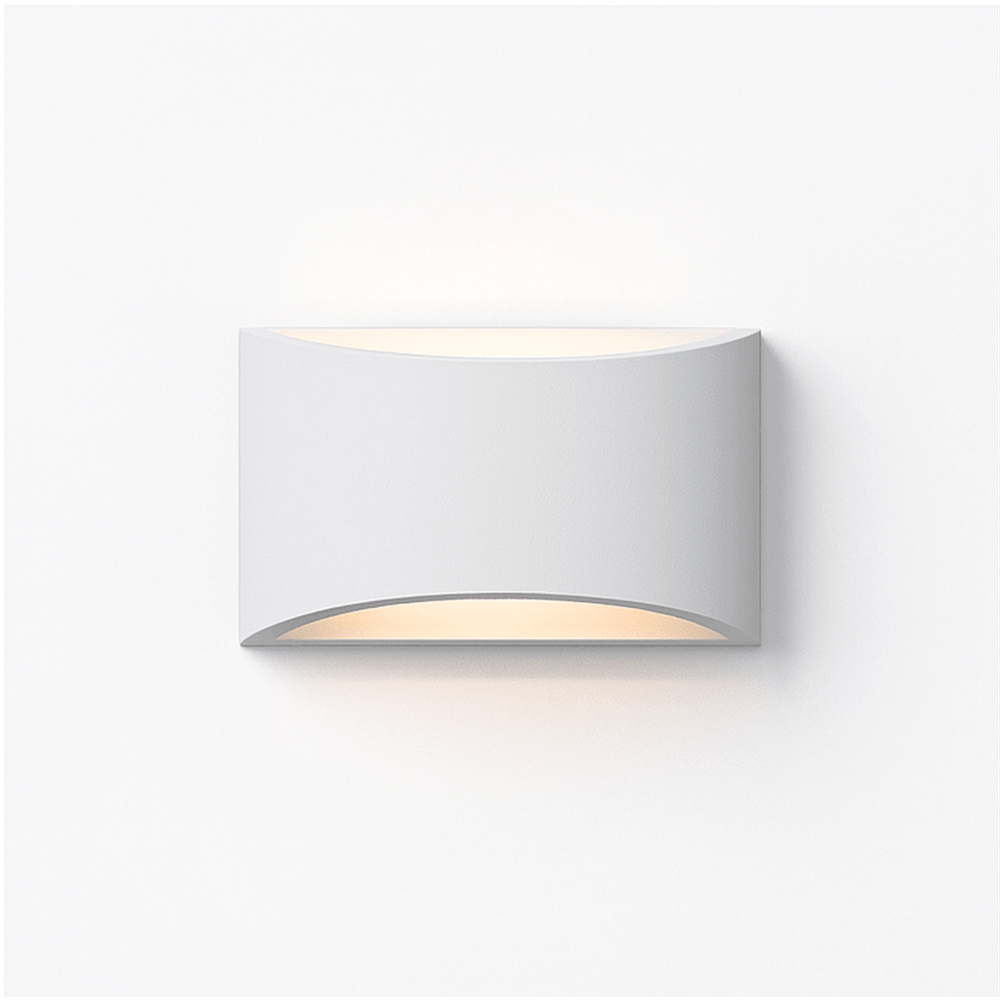 Kirta wall lamp is a modern gypsum light fixture with a minimalist, curved rectangular design that casts soft light upward and downward. Its smooth, matte finish and clean lines blend seamlessly with contemporary interiors, adding ambient illumination ideal for hallways, living rooms, bedrooms, or entryways. Crafted for durability, this fixture combines functionality with sophisticated style, making it a versatile addition to any space.