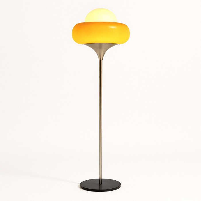 LeCrostata Lampadaire allie praticité et esthétique. Ce lampadaire moderne du milieu du siècle, qui s'inspire des années 1970, comporte un abat-jour en verre fabriqué à la main qui adoucit la projection de la lumière, ajoute de la brillance et une touche design, donnant à la pièce un air très vintage. Avec le Crostata, vous pouvez facilement donner à n'importe quel espace une sensation haut de gamme et tendance.