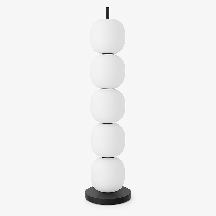 The Beaded Floor Lamp is crafted with hand-blown glass shades that resemble beads, a black powder-coated metal stem, and a sturdy marble base. The combination of these materials not only ensures durability but also adds an element of timeless elegance to any space.