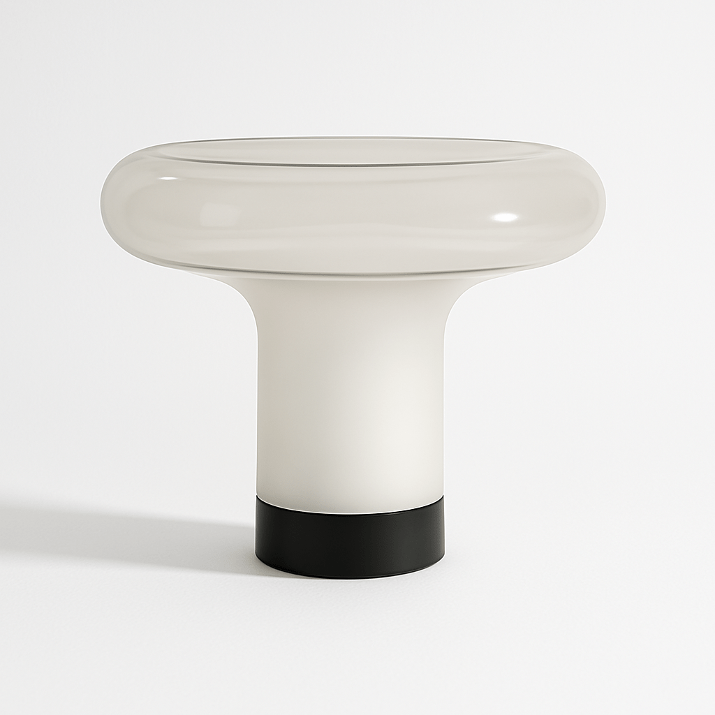 Distinct mushroom-shaped silhouette made from blown glass for a striking look.