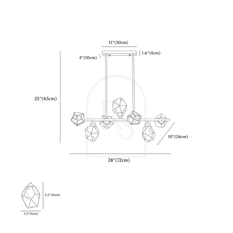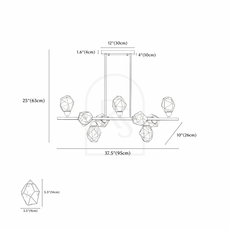 Product Dimensions: A - 9 Lights: L31.5"(80cm) x H17.7"(45cm) A - 12 Lights: L35.4"(90cm) x H17.7"(45cm) A - 15 Lights: L39.3"(100cm) x H17.7"(45cm) B - 7 Lights: L28.3"(72cm) x W10.2"(26cm) x H24.8"(63cm) B - 9 Lights: L37.4"(95cm) x W10.2"(26cm) x H24.8"(63cm)