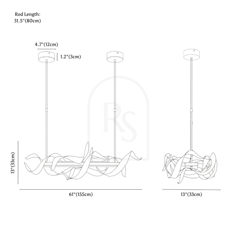 The Namid Chandelier is meticulously crafted from hand-forged steel, which is then accentuated with a powder-coated finish. This combination not only ensures durability and resistance to temperature and fading but also enhances the chandelier's elegant and modern aesthetic. The steel ribbons are designed to create a captivating illusion of movement, making this piece a true work of art and a standout feature in any upscale living space.
