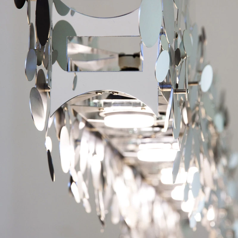 The Maahnoor Chandelier boasts an exquisite steel frame adorned with perfectly cut discs in a luxurious gold or chrome-plated finish, meticulously assembled into clusters. For a seamless and safe installation, we recommend using a professional installer. Enjoy the elegant, shimmering radiance this piece brings to your space!