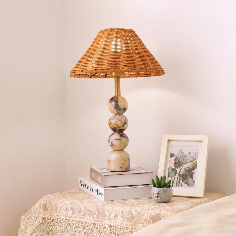 Malyin- Elegant Stone Base with Handwoven Rattan Shade for a Warm, Ambient Glow