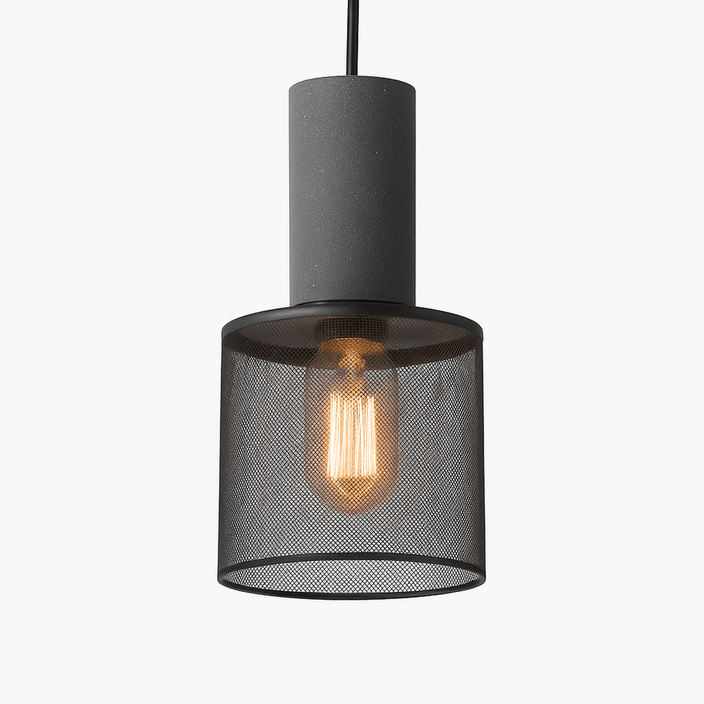 The Mehora Pendant Light blends industrial and modern aesthetics with its stone and iron construction. Its cylindrical design features a stone top and perforated iron shade, creating a subtle light diffusion. The black mesh finish enhances its contemporary appeal, making it an ideal light fixture for dining areas, kitchen islands, and loft-style interiors. Designed for both residential and commercial spaces, it offers a bold statement with durable materials that balance functionality and style.