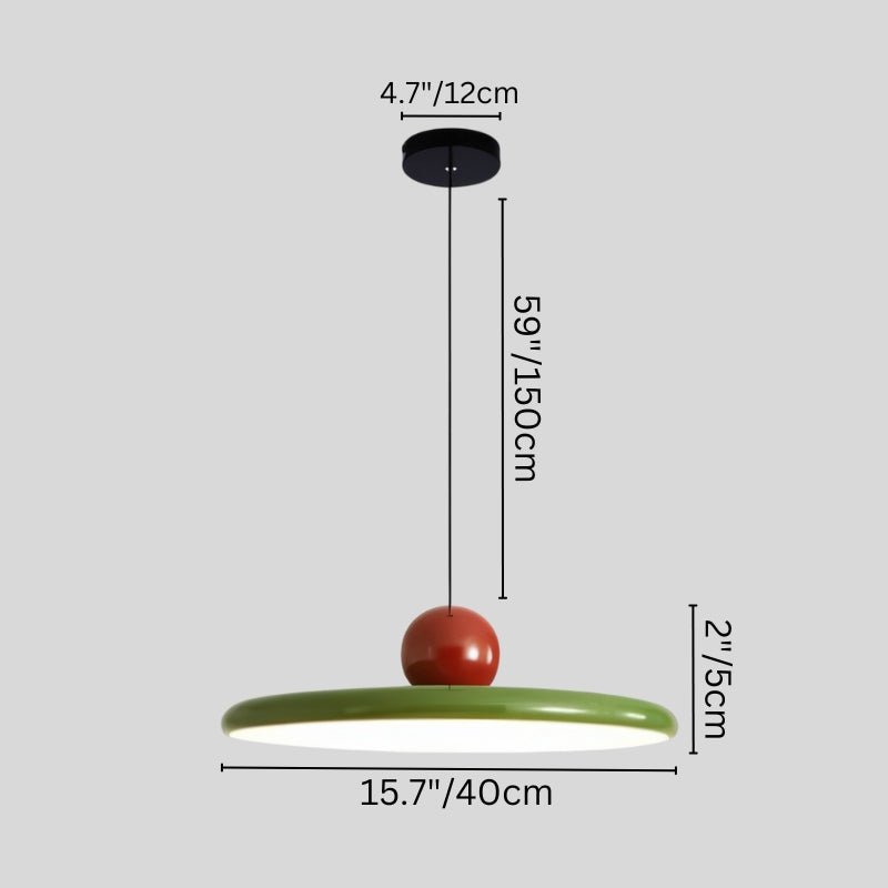 - Striking disc-shaped shade with a spherical accent for contemporary appeal.