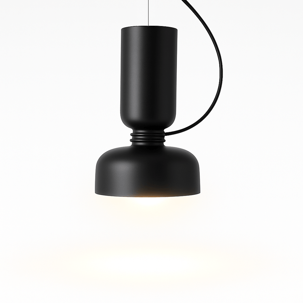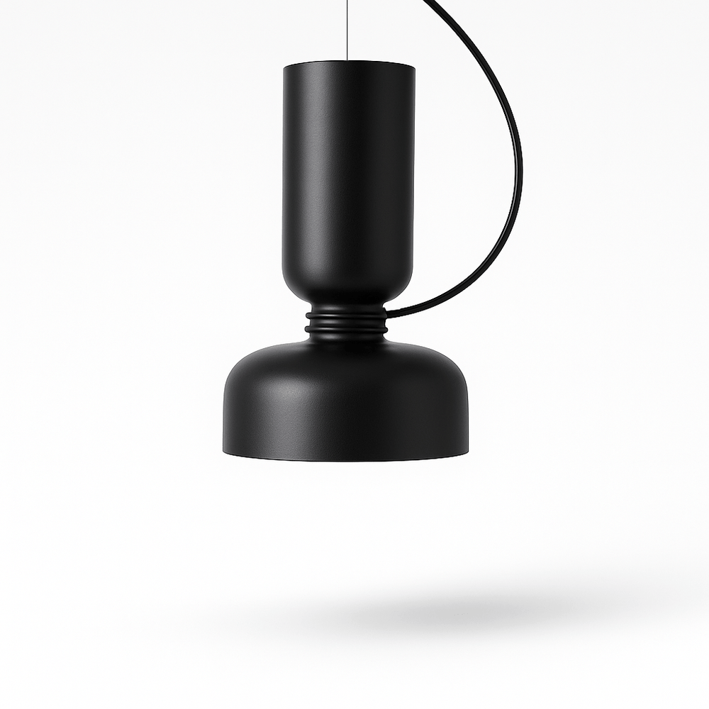 Matte aluminum and iron pendant delivers focused illumination and a sleek floating effect — perfect for kitchen islands, dining tables, and modern spaces.