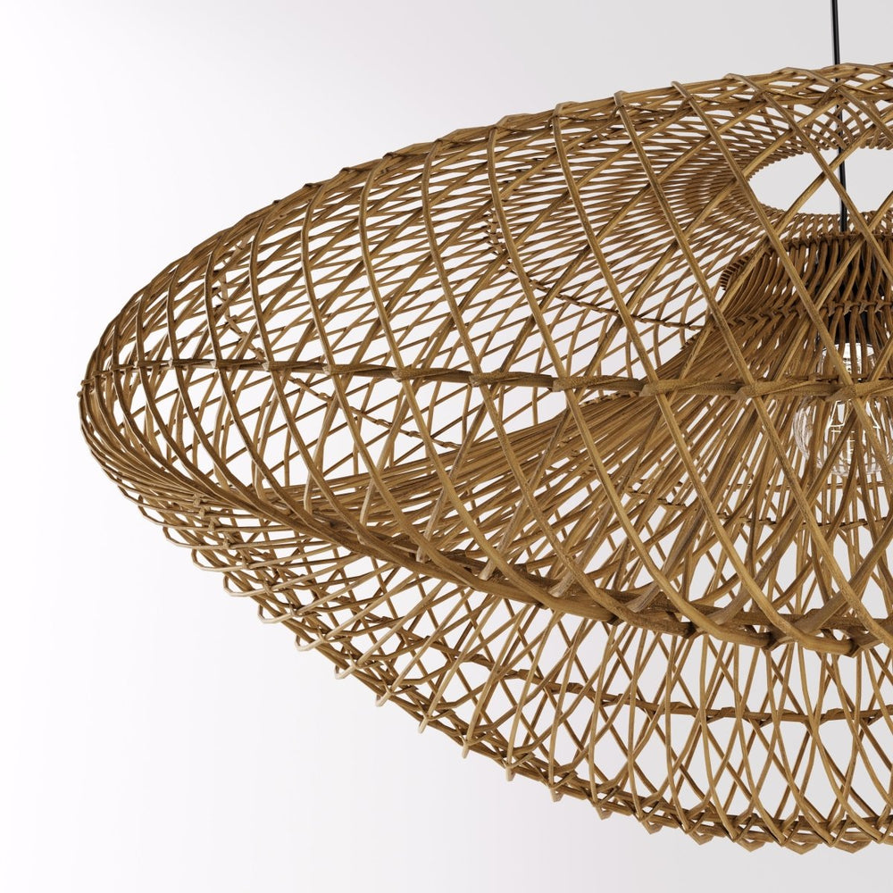 The adjustable wire of the Nest Rattan Pendant Light is 1.2 meters long, providing ample flexibility for installation in various ceiling heights and spaces.