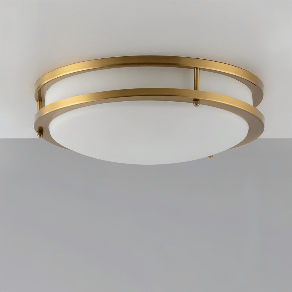 The Niva Ceiling Light is a refined light fixture designed with a copper frame and a smooth glass cover for durability and elegance. Its round flush-mount style offers soft, even illumination through the glass diffuser. The warm metallic finish enhances modern and transitional interiors, making it versatile for various spaces. This ceiling light fixture is ideal for living rooms, bedrooms, hallways, and dining areas, combining functionality with sophisticated design.