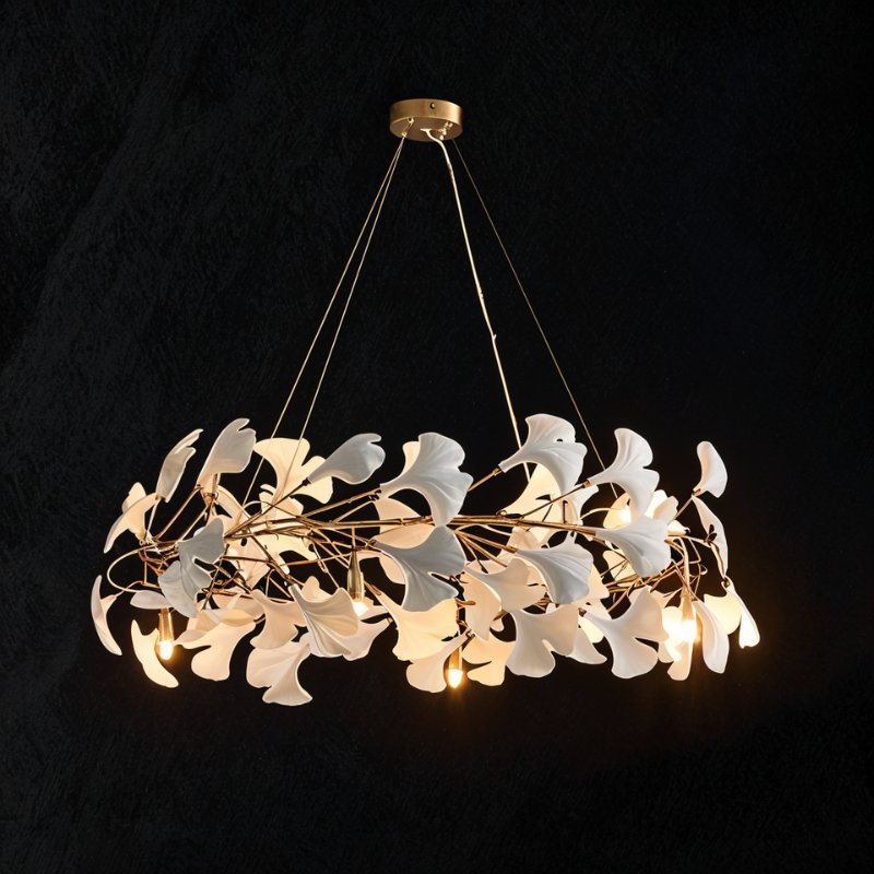 Acrylic and ceramic chandelier offers energy-efficient LED lighting and versatile style — perfect for dining rooms, living spaces, and galleries.