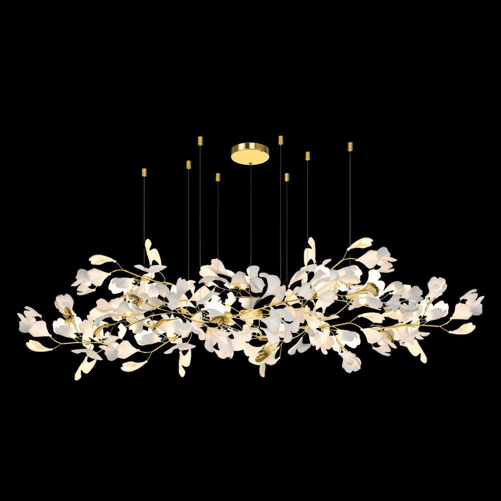 Le lustre Panra est une pièce naturaliste remarquable qui donne à n'importe quel espace une touche somptueuse. C'est un mélange de proportions vraiment exquises, qui présente une variété de motifs de feuilles exquises en acrylique et en céramique attachées à des fils métalliques avec des mini abat-jour. Ce lustre améliore votre espace de vie et génère une aura élégante. Douce et apaisante, la lumière diffuse est idéale pour éclairer votre intérieur. Panra convient pour une utilisation dans les lieux de travail, les salons, les salles à manger, les galeries et autres espaces résidentiels et commerciaux.