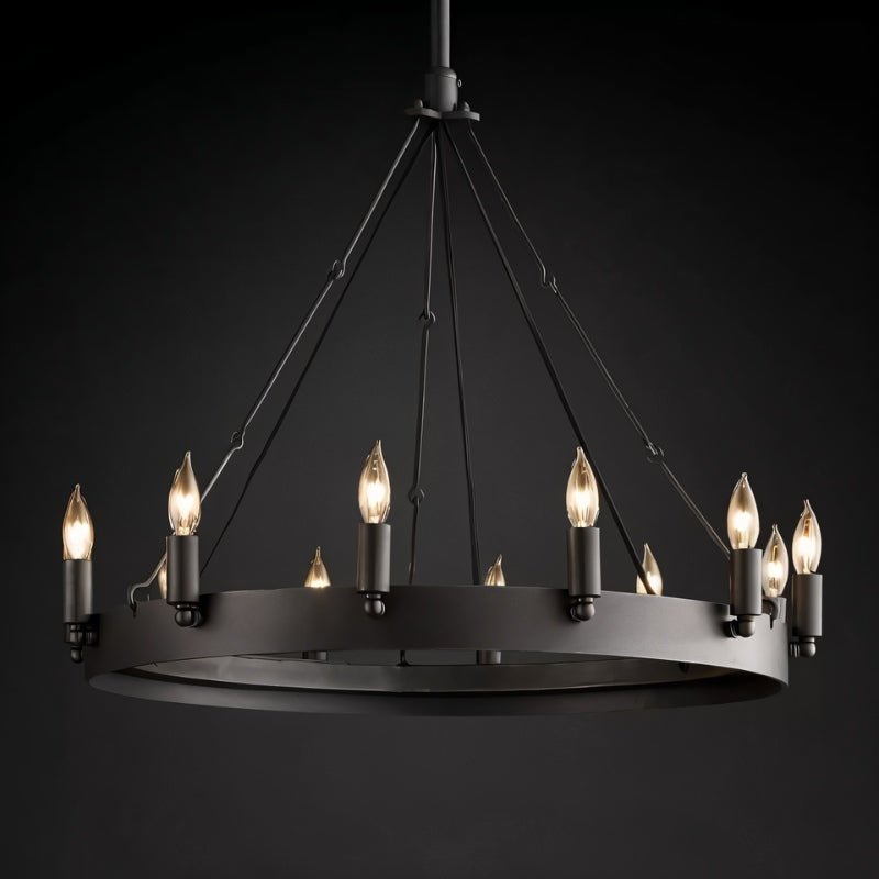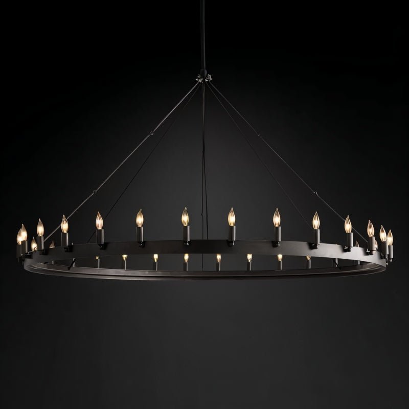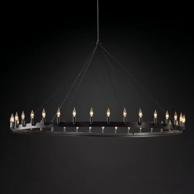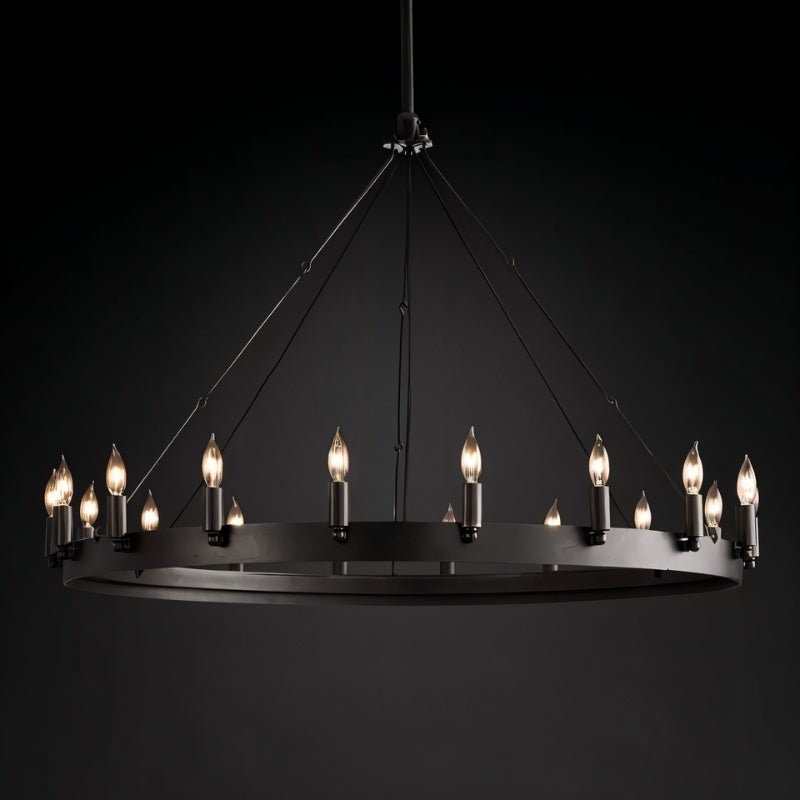 The Phlox Chandelier is constructed from strong-angle iron, which combines both durability and elegance. For optimal installation, we recommend using a professional installer to ensure safety and proper setup.