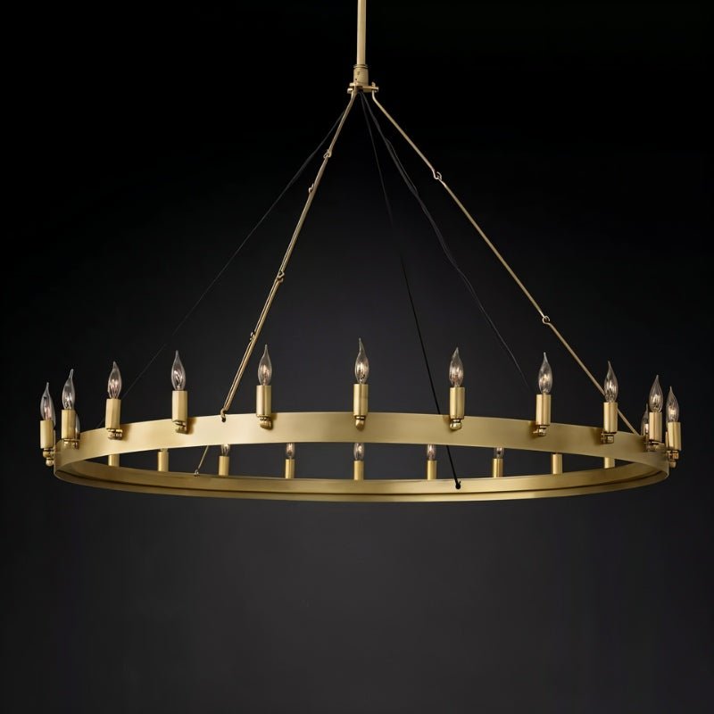 The Phlox Chandelier enhances room ambiance by incorporating a blend of rustic charm and industrial aesthetics, ideal for creating a warm, inviting atmosphere. Its design features early 20th-century industrial elements and uses filament bulbs that emit a nostalgic glow, reminiscent of a bygone era. The chandelier's robust construction from angle iron, available in finishes like Vintage Brass and Matte Black, adds both durability and elegance. With its simple yet striking design, the Phlox Chandelier serves as a statement piece, drawing attention and becoming the focal point in any room. This combination of vintage style, functional lighting, and statement-making capability makes it a perfect choice for enhancing the ambiance of both residential and commercial spaces.
