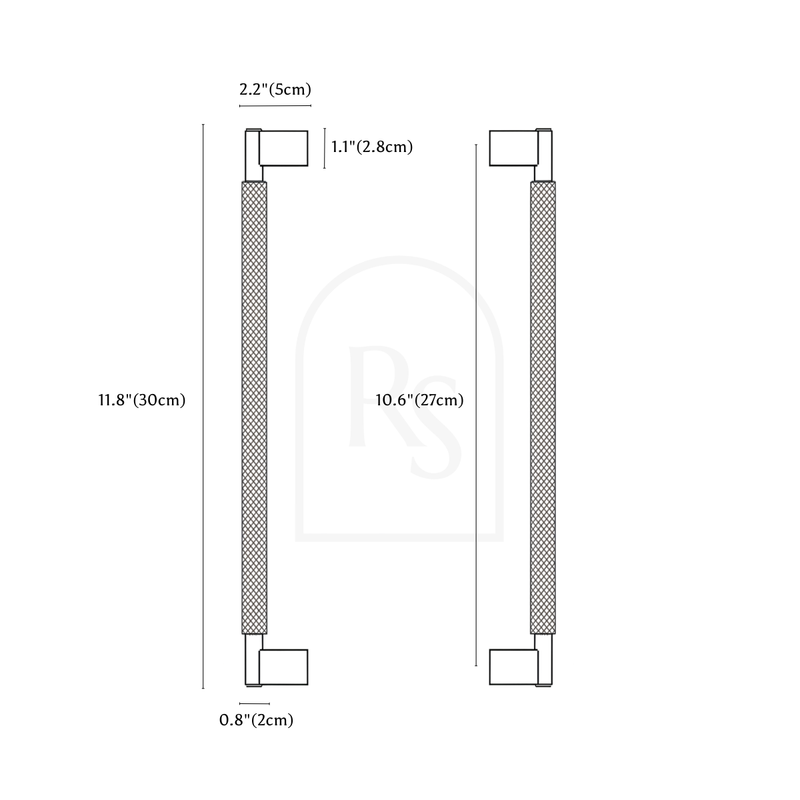 Solid brass pull offers enduring strength and a knurled grip for tactile comfort — perfect for doors needing pulls on both sides.