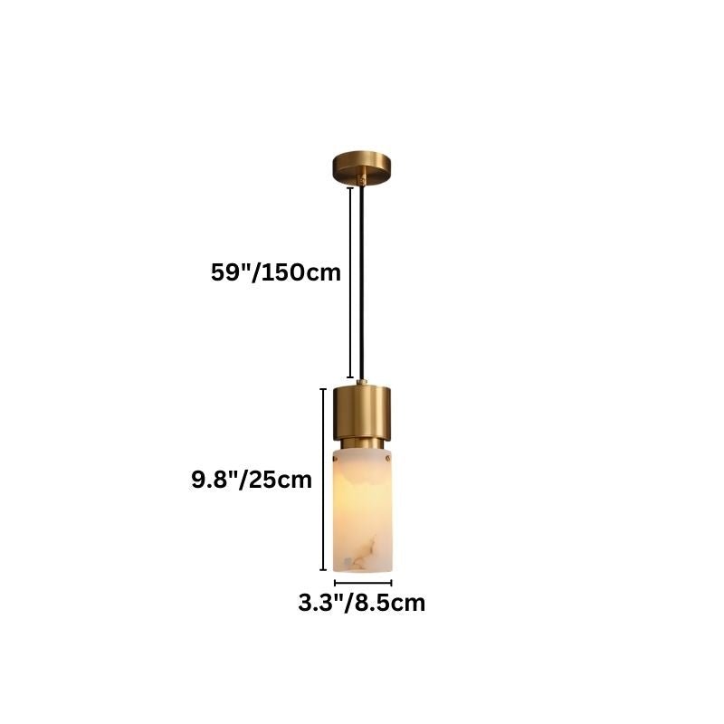 The Rylvexa Pendant Light features a cylindrical alabaster shade suspended by a sleek copper-accented frame, offering a warm, diffused glow. The minimalist design complements both modern and classic interiors, enhancing bedside tables, kitchen counters, or reading nooks. This versatile light fixture combines durability with timeless elegance, ideal for accent lighting in small spaces.