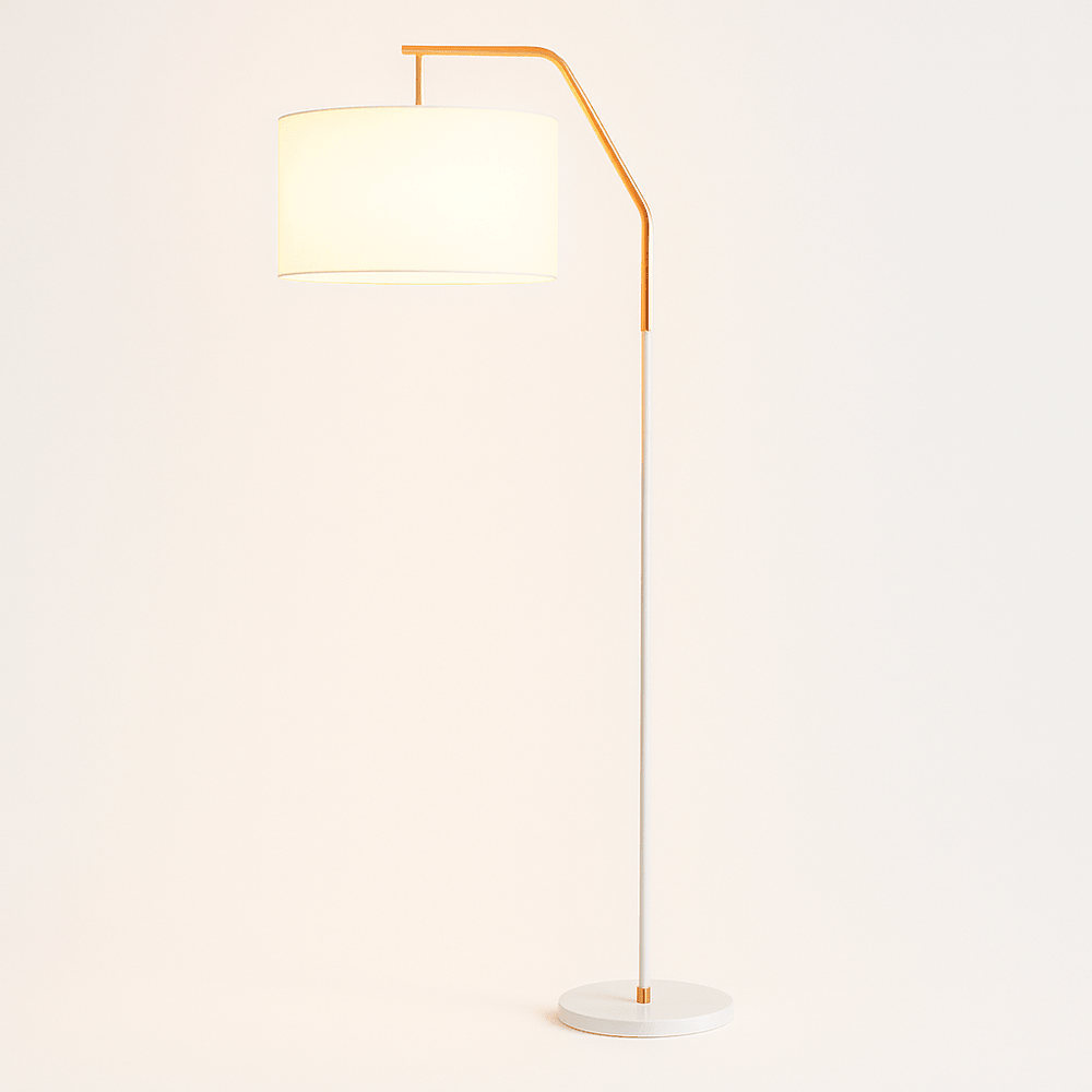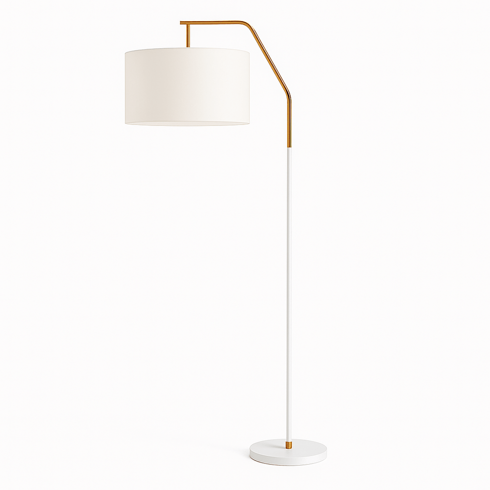The Saiga Floor Lamp is an iron and fabric light fixture with a sleek frame and a fabric drum shade for soft, diffused lighting. Its modern design enhances living rooms, bedrooms, or offices with style and functionality. Durable iron construction ensures longevity, while the fabric shade creates a warm, inviting glow, ideal for contemporary interiors.