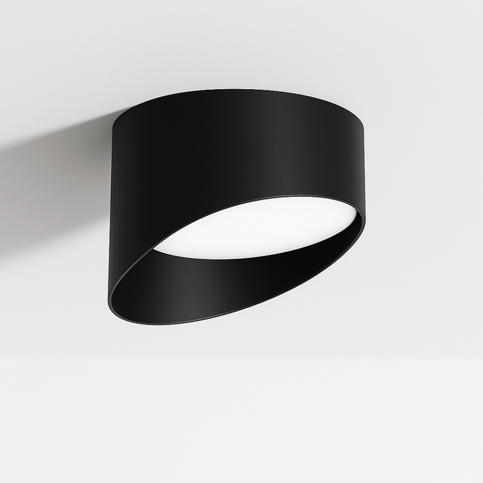The Siona Downlight is a modern aluminum light fixture with a sleek cylindrical shape and asymmetric cut for focused downward lighting. Its flush-mounted design suits hallways, living rooms, offices, and commercial spaces. The matte black finish enhances contemporary interiors, while its durable aluminum body ensures longevity. Perfect for creating a modern ambiance with style and functionality.