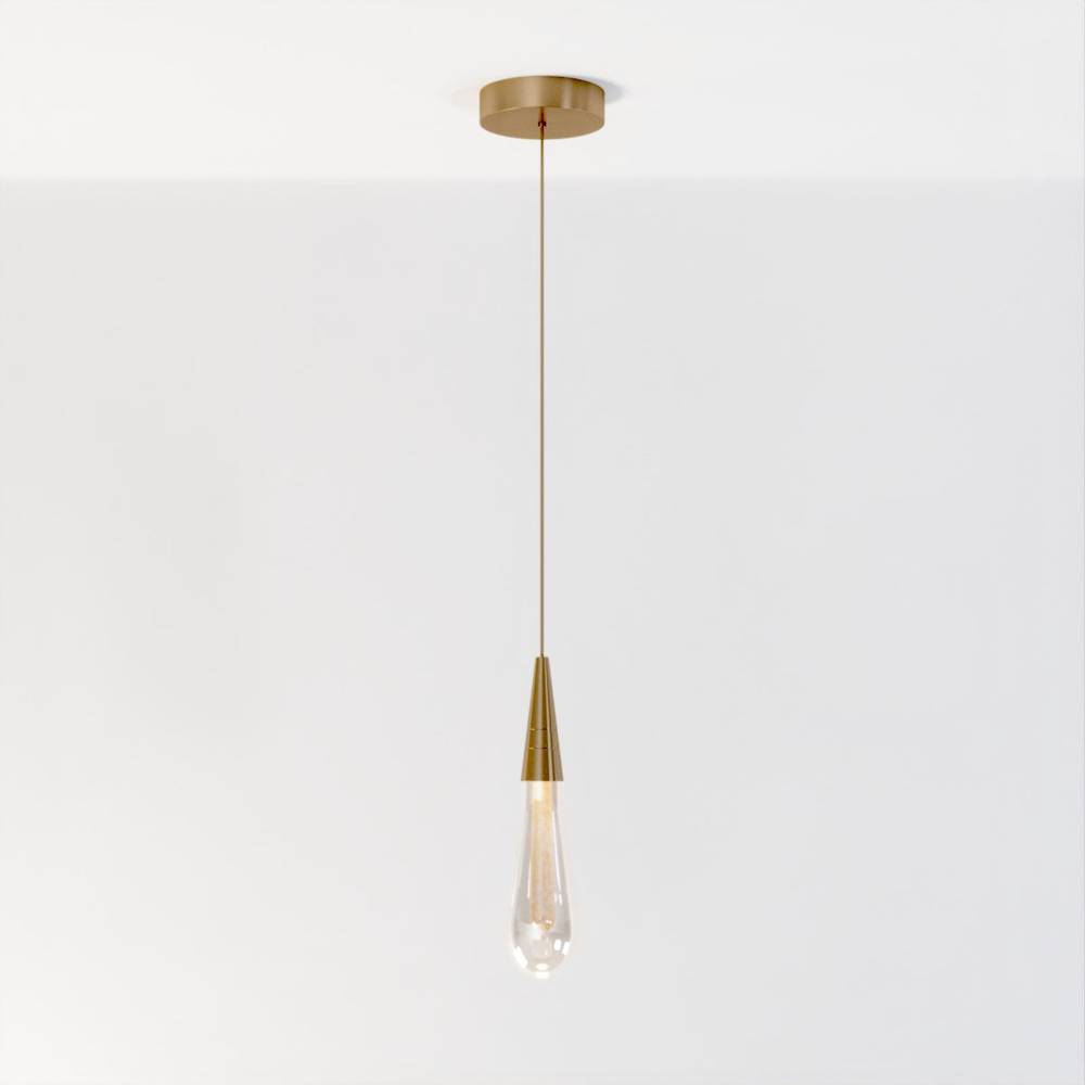 The Drop Pendant Light's crystal bottom and gold finish create a calming glow, adding modern elegance to your bedroom.