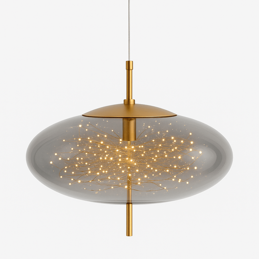 Smoky glass pendant creates a celestial ambiance with enchanting starlights — perfect for adding sophistication to living rooms, dining areas, or bedrooms.