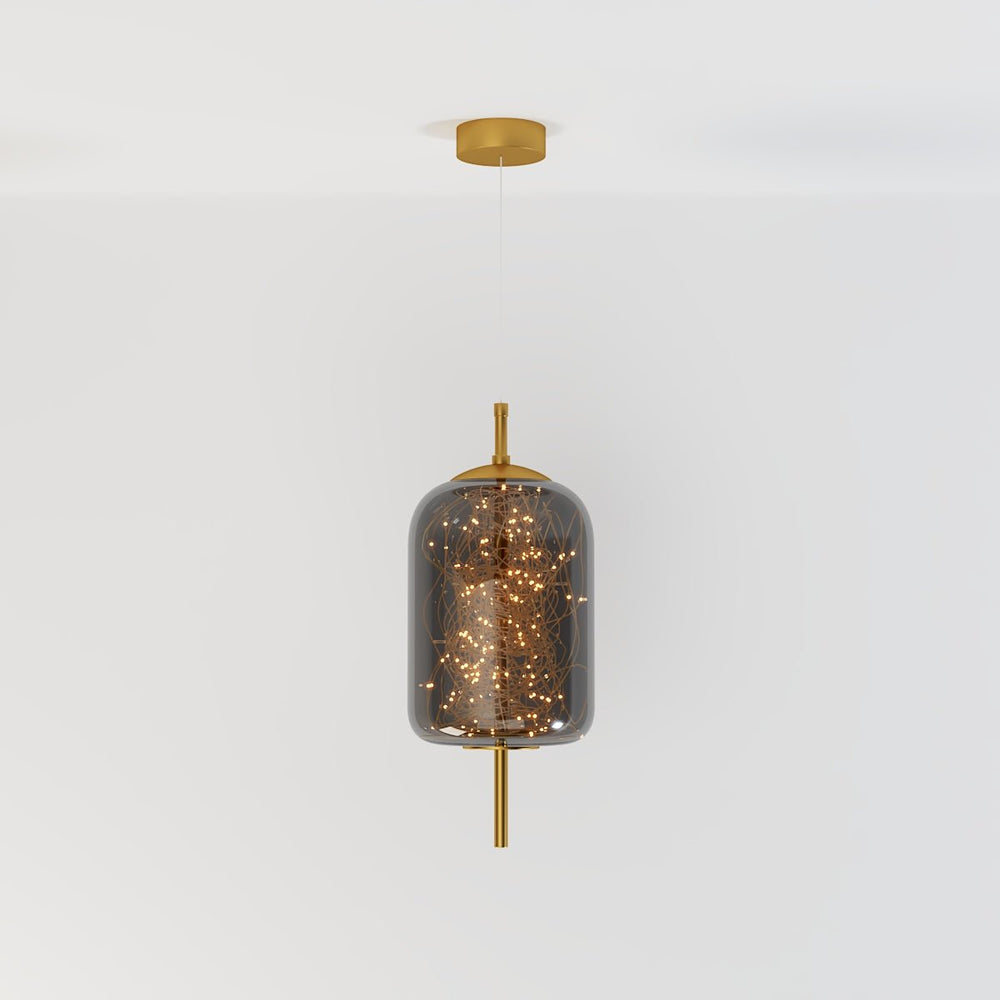 The Twirl Pendant Light creates an enchanting celestial ambiance with its smoky glass and starlight design, making it a breathtaking sight in low light conditions.