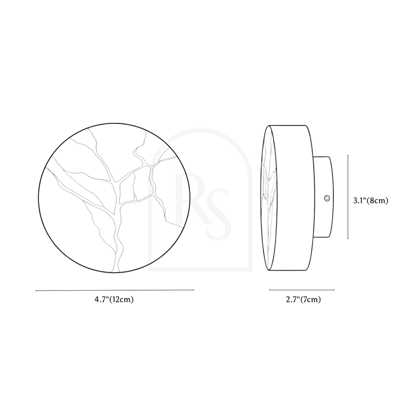 Product Dimensions: D4.7"(12cm) x W2.7"(7cm) Wattage (Lumens): 5W (550lm) Material: Alabaster Marble, Stainless Steel Finish: Brass, Black Light Source: Integrated LED Dimmable: Upon Request Voltage: 90-260VAC Installation Type: Wall Mount Canopy/Backplate Dimensions: 3.1" / 8cm Certifications: UL, CCC, CE, CQC, EMC, FCC, GS, LVD, PSE, ROHS, SAA, and VDE