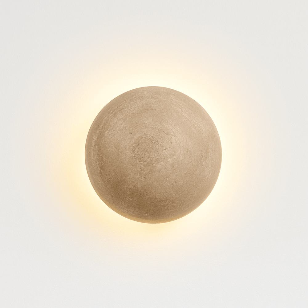 Tirov Travertine Wall Lamp is a stunning light fixture crafted from natural yellow travertine, bringing an earthy elegance to any space. Its spherical design creates a warm, radiant glow that softly illuminates the surrounding wall, enhancing the ambiance without overwhelming the space. This light fixture can serve as an eye-catching accent in living rooms, bedrooms, or hallways, adding a unique, natural texture to the decor.