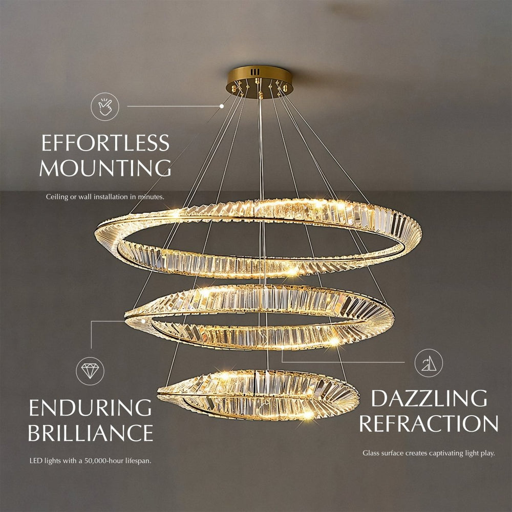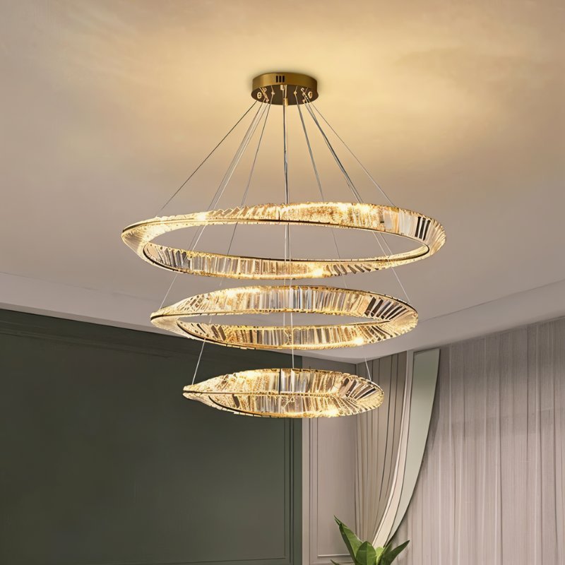 Superior metal rings and crystal lampshade create a sophisticated and stylish lighting statement.