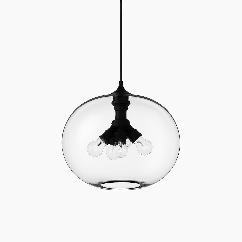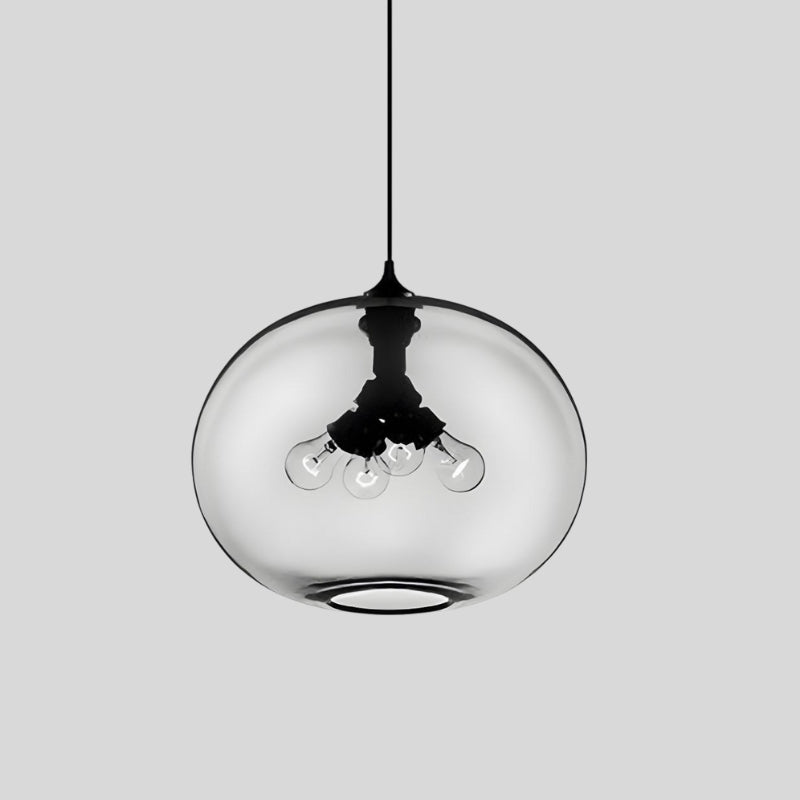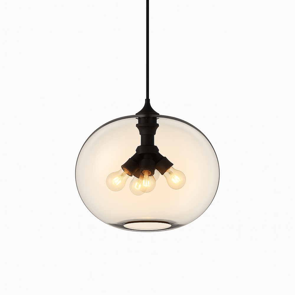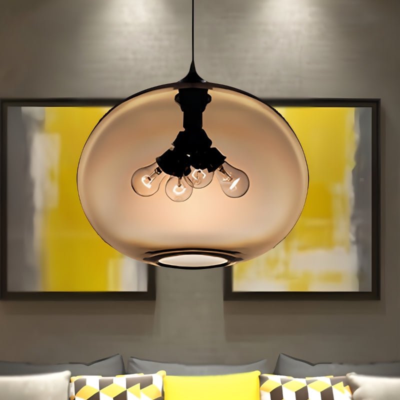 The Tovara Pendant Light combines glass and iron in a bold, modern design. Its smoked glass shade forms a smooth, rounded silhouette, highlighting exposed bulbs in a clustered arrangement for optimal illumination. The semi-transparent glass diffuses light softly, creating an inviting ambiance while making a strong visual statement. Ideal for living rooms, dining areas, and entryways, this versatile light fixture complements industrial, minimalist, and mid-century interiors.