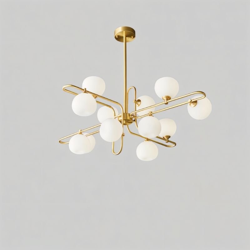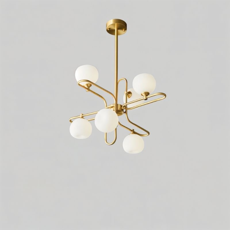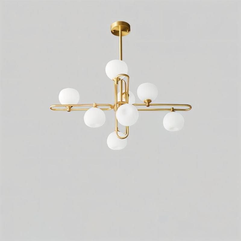 The Trevon Chandelier is a modern light fixture crafted from copper and glass, available in 6, 8, and 12-head variations. Its contemporary design features spherical glass shades and a sleek metal frame, making it ideal for living rooms, dining areas, and high-ceiling spaces. Offered in two colors, it blends seamlessly with modern and minimalist interiors. The chandelier’s dynamic arrangement enhances ambient lighting while serving as a striking focal point. Perfect for residential and commercial settings, it elevates any space with a sophisticated touch.