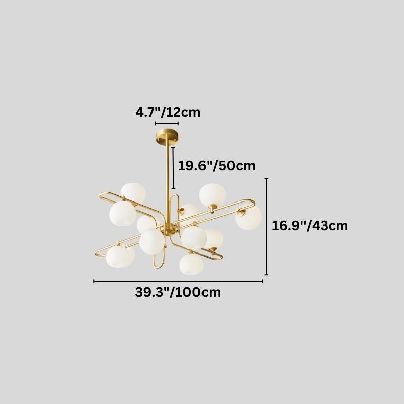Product Dimensions: 6 Heads - 24.8" x 16.9" / 63 x 43cm / 30W, 8 Heads - 31.4" x 16.9" / 80 x 43cm / 40W, 12 Heads - 39.3" x 16.9" / 100 x 43cm / 60W Weight: 4 Kg, 5 Kg, 7 Kg Material: Glass, Copper Finish: Gold, Black, White Light Source: LED Light Bulb (Replaceable) Bulb Included: Yes Number of Bulbs: 6, 8, 12 Bulb Base: G9 Dimmable: Upon Request Wattage: 30W, 40W, 60W Lumens: 100 lm/W Voltage: 90-260VAC Installation Type: Hardwired Chain/Cord Length: Up to 19.7 Inches (50cm) Adjustable Cord: Yes Canopy/Backplate Dimensions: 4.7" / 12cm Sloped Ceiling Compatible?: Upon Request Certifications: UL, CCC, CE, CQC, EMC, FCC, GS, LVD, PSE, ROHS, SAA, and VDE