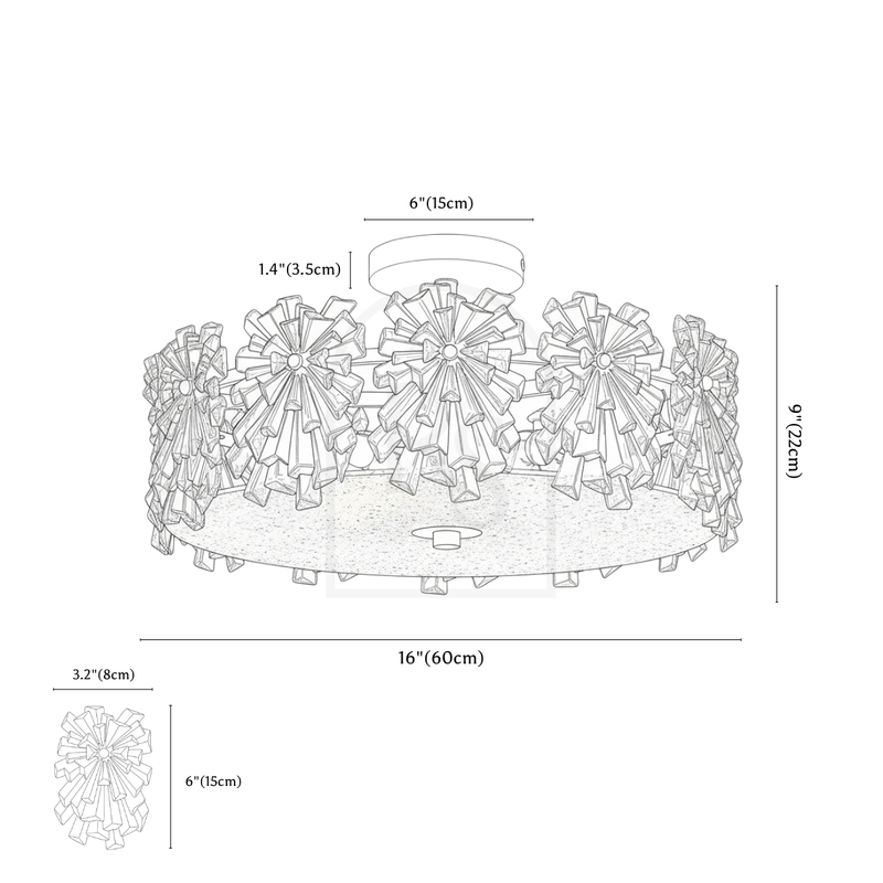 The Veya Ceiling Light is a luxurious light fixture crafted from copper and glass, featuring a polished copper frame and intricate starburst-shaped glass accents that beautifully reflect and refract light. Its inner diffuser softens the illumination, casting an even glow across the room. With its flush-mount design, this ceiling light fixture is ideal for bedrooms, living rooms, dining areas, or entryways. The combination of copper and glass ensures both durability and elegance, making it a striking centerpiece for any interior.