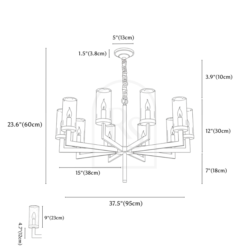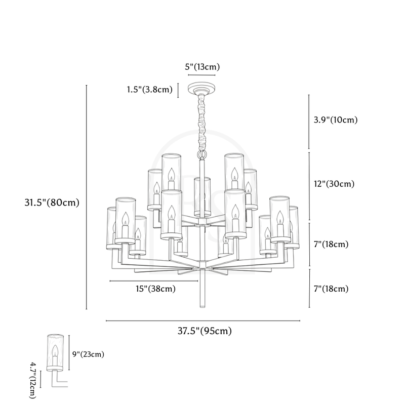 Product Dimensions: 6 Heads - 24.8" x 23.6" / 63 x 60cm / 60W, 8 Heads - 29.9" x 23.6" / 76 x 60cm / 80W, 10 Heads - 37.4" x 23.6" / 95 x 60cm / 100W, 15 Heads - 37.4" x 31.4" / 95 x 80cm / 150W Weight: 8Kg, 10.4Kg, 12.9Kg, 19Kg Material: Copper, Glass Finish: Brass, Clear Light Source: LED Light Bulb (Replaceable) Bulb Included: Yes Number of Bulbs: 6, 8, 10, 15 Bulb Base: E14 Dimmable: Upon Request Wattage: 60W, 80W, 100W, 150W Lumens: 100 lm/W Voltage: 90-260VAC Installation Type: Hardwired Chain/Cord Length: Up to 3.3ft (1 meter) Adjustable Cord: Yes Sloped Ceiling Compatible?: Yes Certifications: UL, CCC, CE, CQC, EMC, FCC, GS, LVD, PSE, ROHS, SAA, and VDE