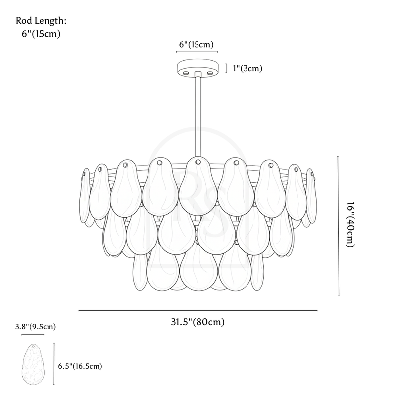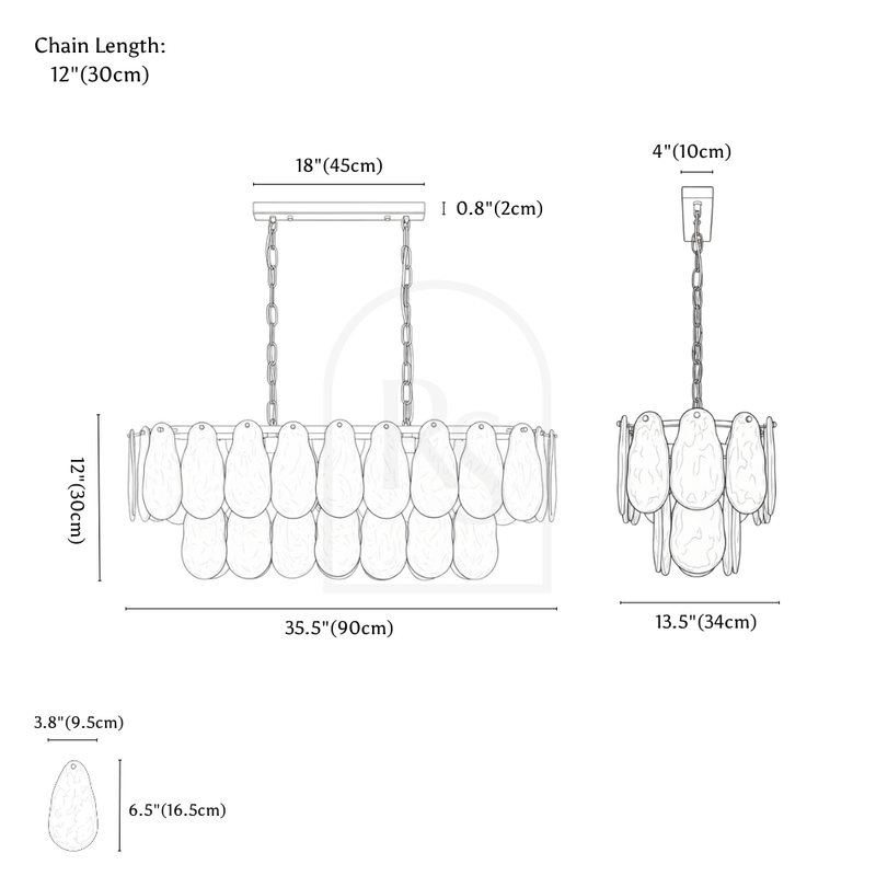 Product Dimensions: 9 Lights Round: D23.6"(60cm) x H15.7"(40cm) 15 Lights Round: D31.4"(80cm) x H15.7"(40cm) 21 Lights Round: D39.3"(100cm) x H19.7"(50cm) 10 Lights Linear: L35.4"(90cm) x W13.4"(34cm) x H11.8"(30cm)