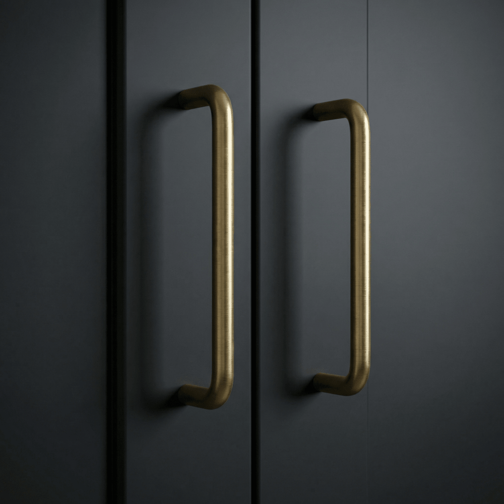 Gold-finished pull bar offers a luxurious touch and ergonomic grip — perfect for enhancing furniture in high-touch areas.
