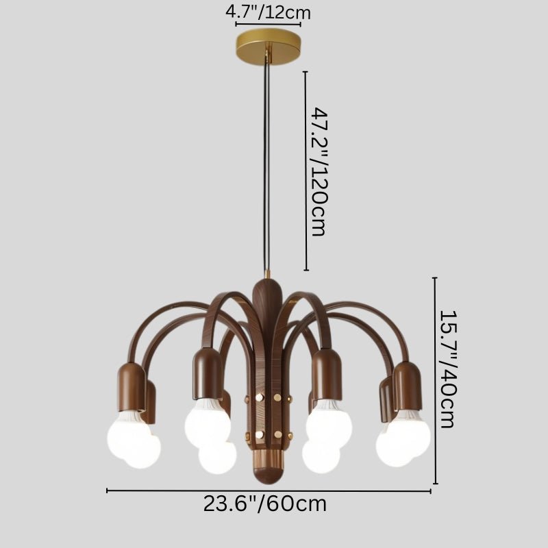 Product Dimensions: 3 Heads: 15.7" x 19.6" / 40 x 50cm / 36W, 6 Heads: 15.7" x 19.6" / 40 x 50cm / 72W, 8 Heads: 15.7" x 23.6" / 40 x 60cm / 92W Weight: 3.2Kg, 3.9Kg, 4.6Kg Material: Iron, Wood Finish: Wood, Brown Light Source: LED Light Bulb (Replaceable) Bulb Included: Yes Number of Bulbs: 3, 6, 8 Bulb Base: E27 Dimmable: Upon Request Wattage: 36W, 72W, 92W Lumens: 100 lm/W Voltage: 90-260VAC Installation Type: Hardwired Chain/Cord Length: Up to 3.9ft (1.2 meter) Adjustable Cord: Yes Canopy/Backplate Dimensions: 4.7" / 12cm Sloped Ceiling Compatible?: Yes Certifications: UL, CCC, CE, CQC, EMC, FCC, GS, LVD, PSE, ROHS, SAA, and VDE