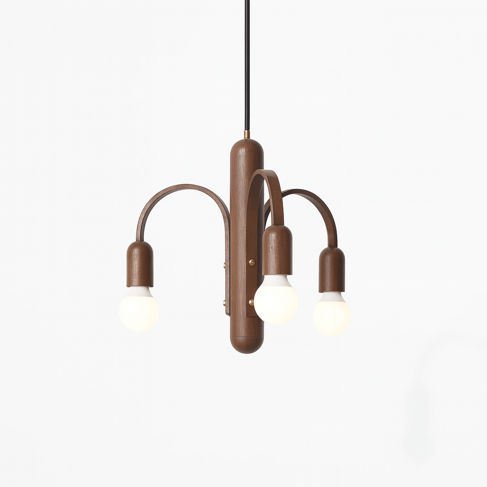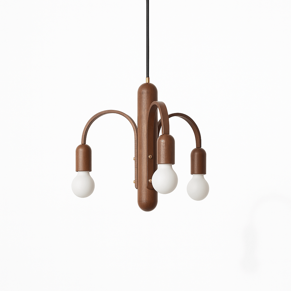 The Zamra Pendant Light merges industrial and mid-century styles with its iron and wood construction. Curved iron arms extend symmetrically from a central wooden hub, creating a bold yet refined light fixture. Exposed bulbs enhance its modern appeal while ensuring ample illumination. Perfect for living rooms, dining areas, and loft-style interiors, its warm wood tones contrast with the sleek iron finish, making it ideal for contemporary and rustic spaces alike.