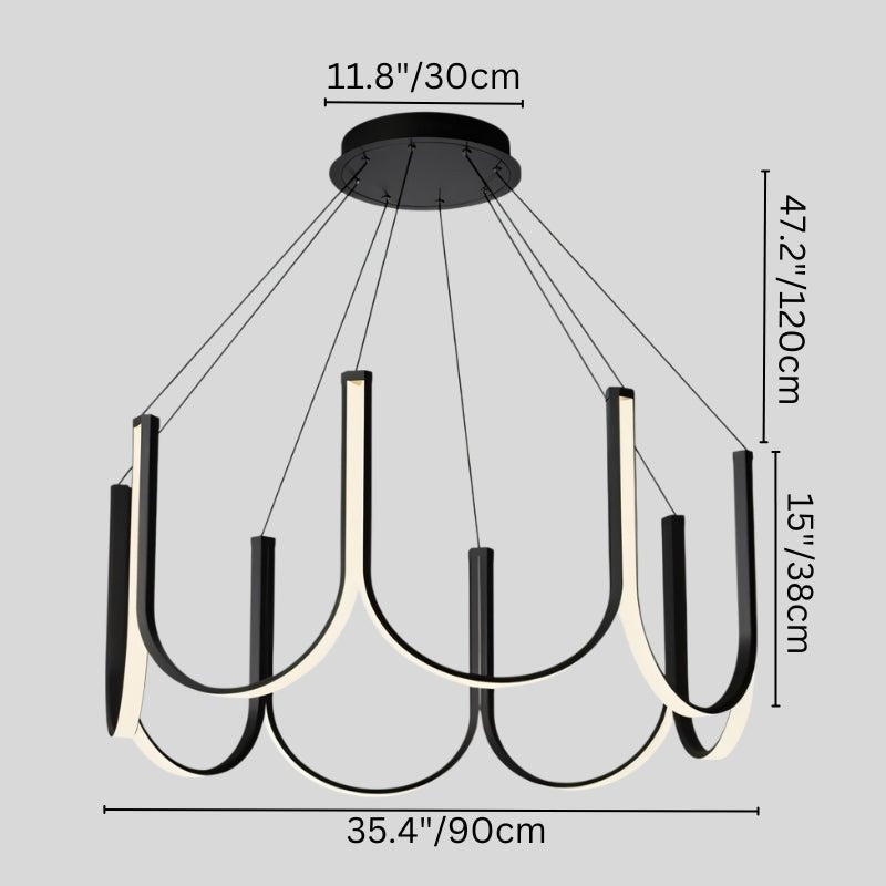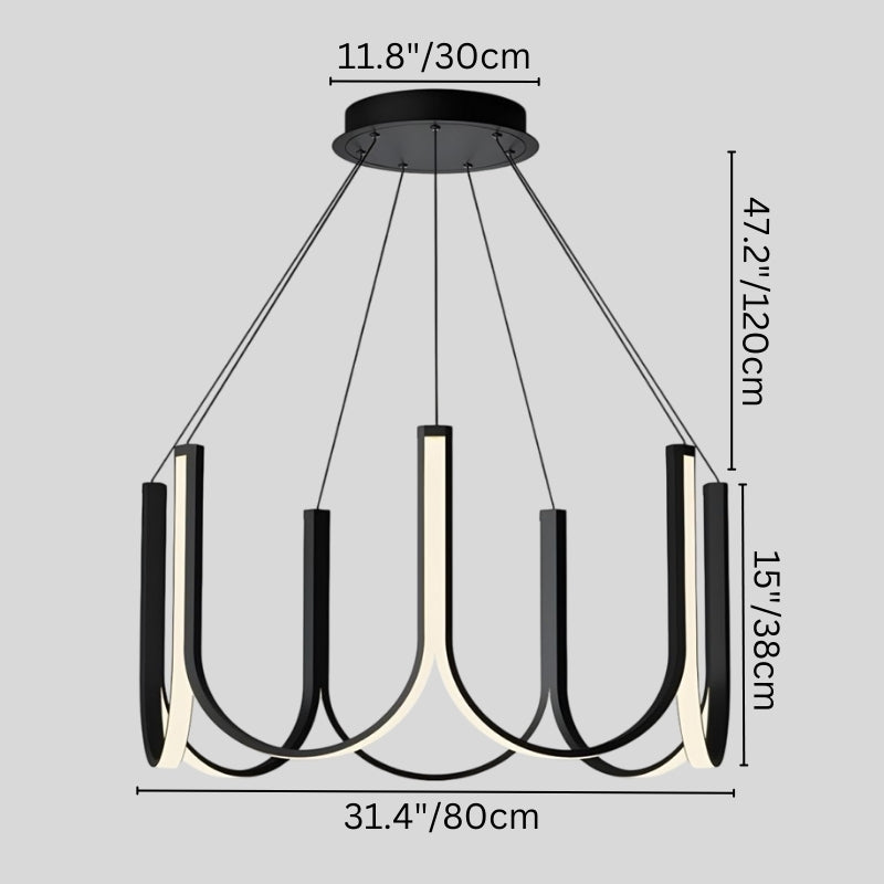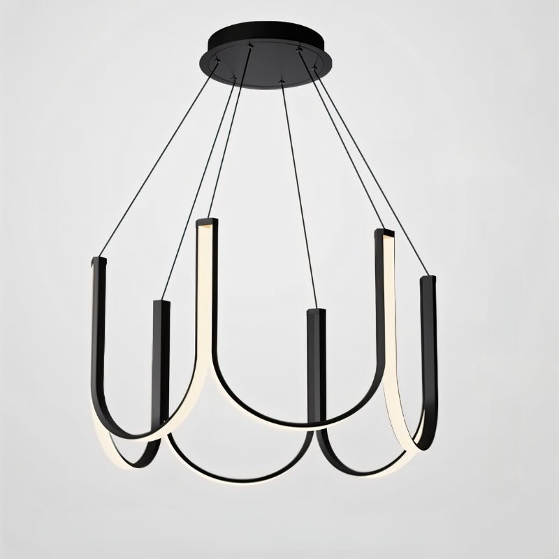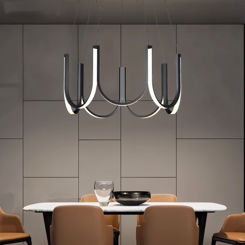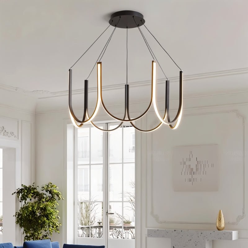 The Aestus Chandelier is a modern light fixture made from alloy and iron, featuring curved, tubular arms that emit soft, ambient light from their edges. Its minimalist design makes it perfect for contemporary living rooms, dining areas, and foyers. The fixture’s sleek form and sophisticated finish elevate both residential and commercial spaces, adding elegance and style. Its versatile design ensures seamless installation in a variety of modern interiors.