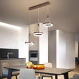 The Aitu Round Chandeliers enhance room aesthetics by providing sleek, minimalist design, ample illumination, and customizable positioning, creating a warm, inviting atmosphere with energy-efficient LED technology, available in elegant coffee and gold colors.