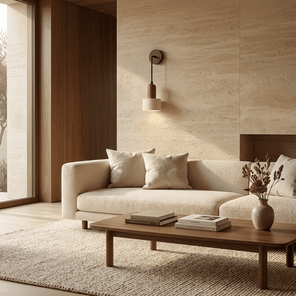 Natural travertine and wood create warm, ambient lighting that enhances cozy spaces — perfect for bedrooms, living rooms, or as elegant hallway accents.