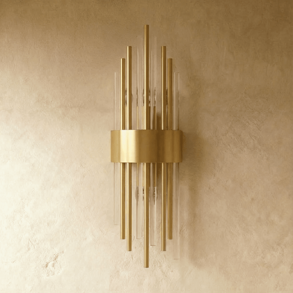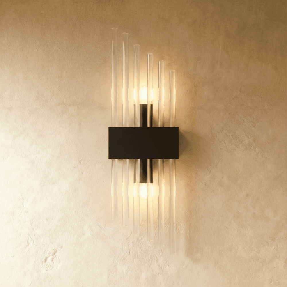 The Amadi Wall Lamp is made of delicate crystal rods and polished stainless steel.