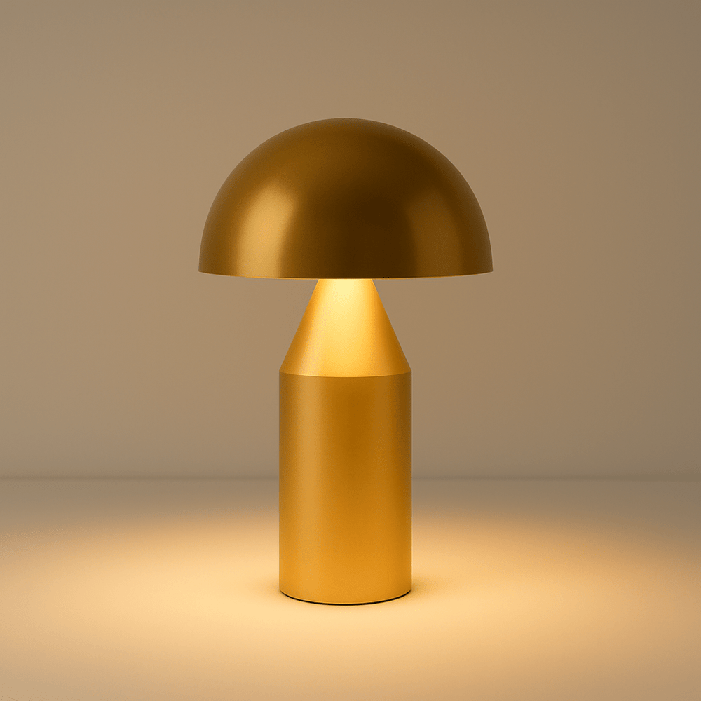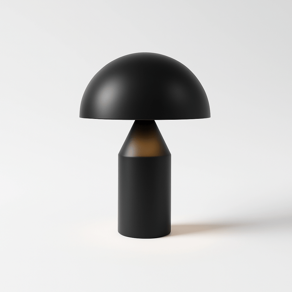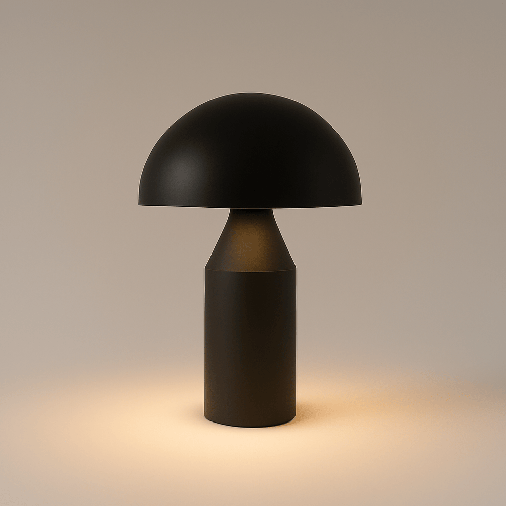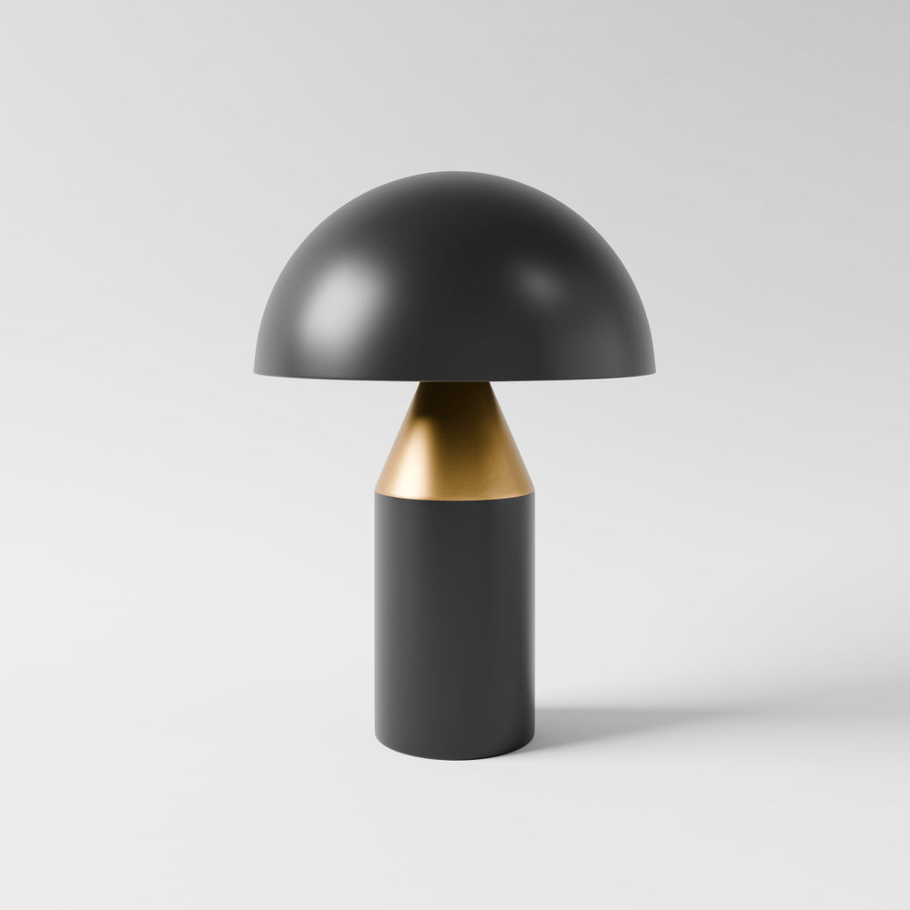 The Amanites Table Lamp is made from geometric shapes including a cylinder, cone, and hemisphere.